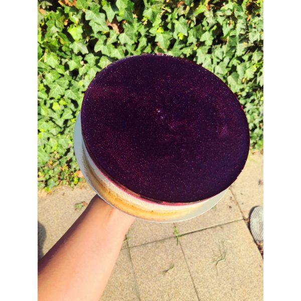 Saját készítésű ropogós keksz alapon, könnyű sajtkrém került, melyet egy réteg áfonya zselé követ