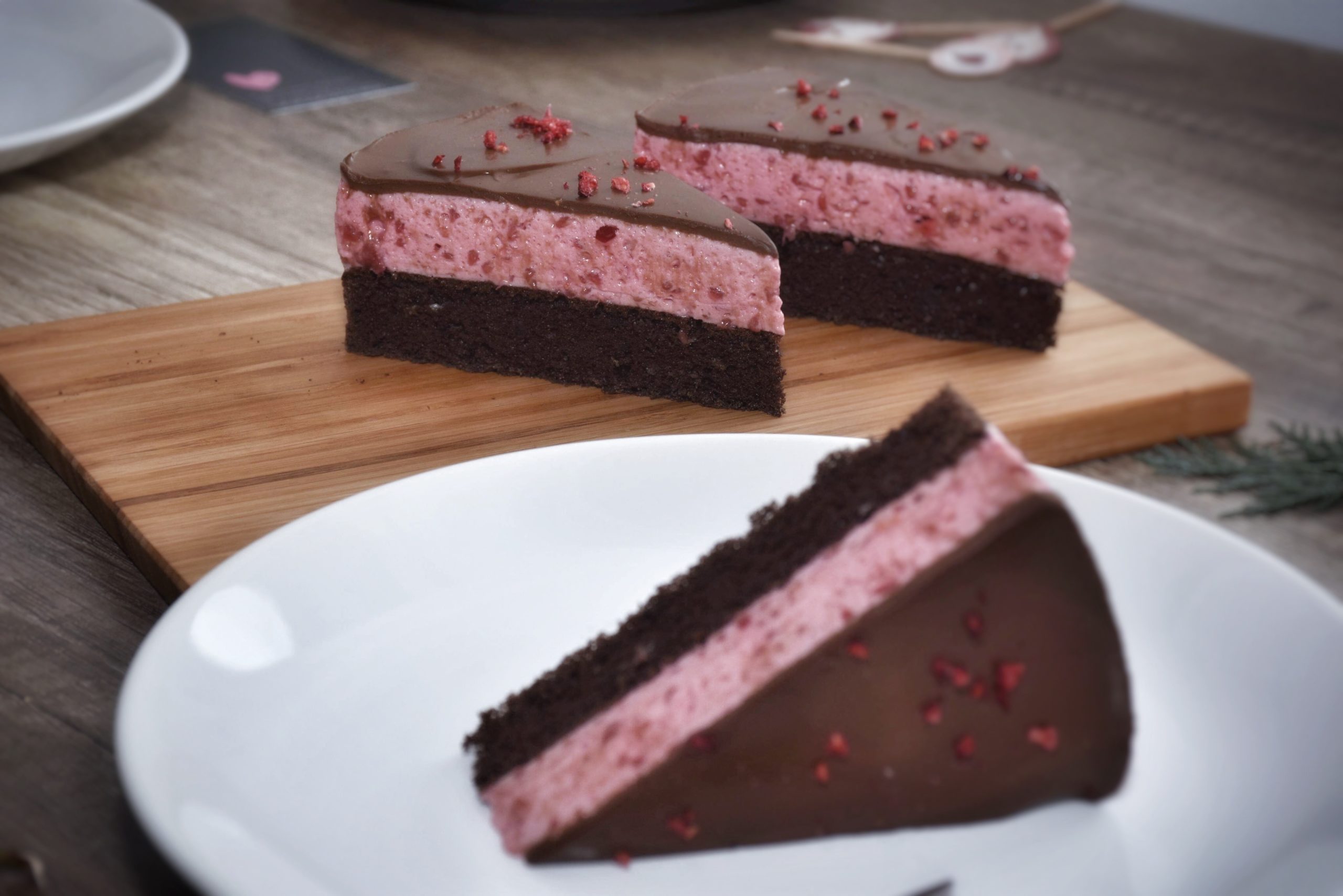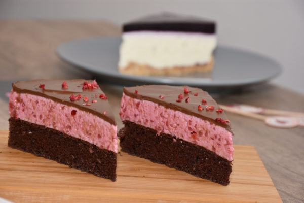 Puha kakaós piskótán, könnyű málnás joghurt krém, csokival a tetején.
